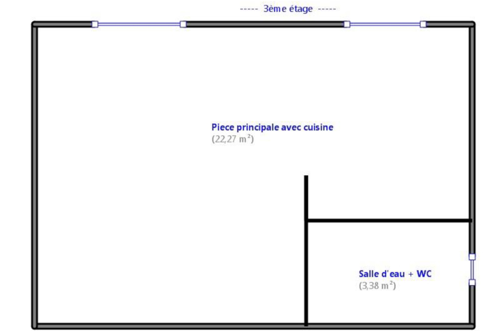 Dans une petite cipropriété de 6 lots principaux, au 3ème et dernier étage, un studio de 25 m² idéal investisseur composé d'une pièce principale avec un coin cuisine et une salle d'eau avec w-c.